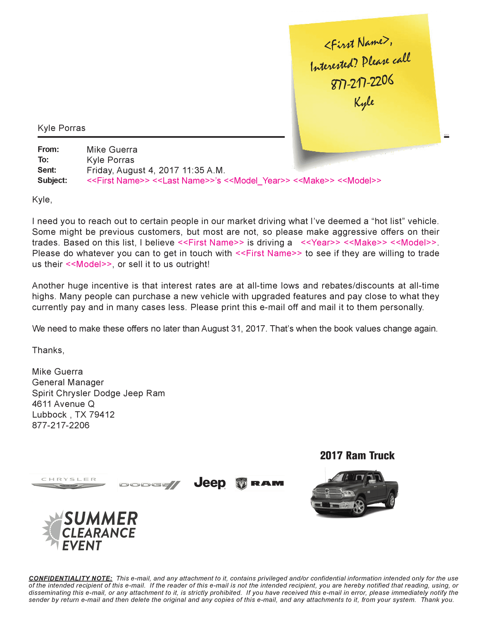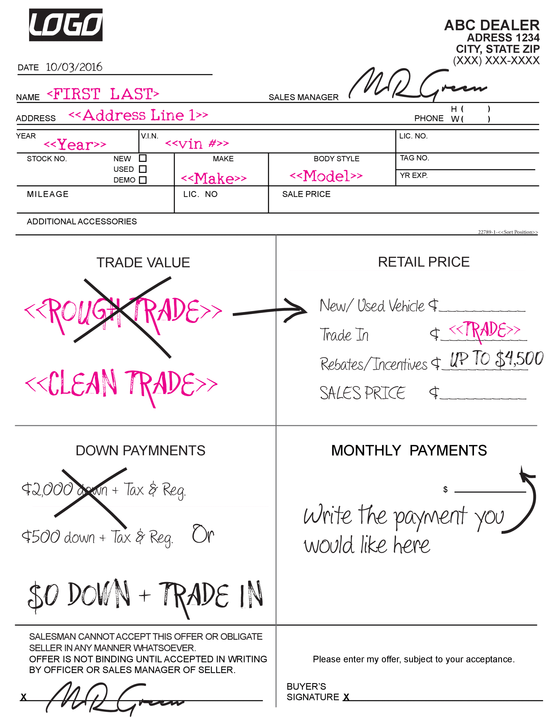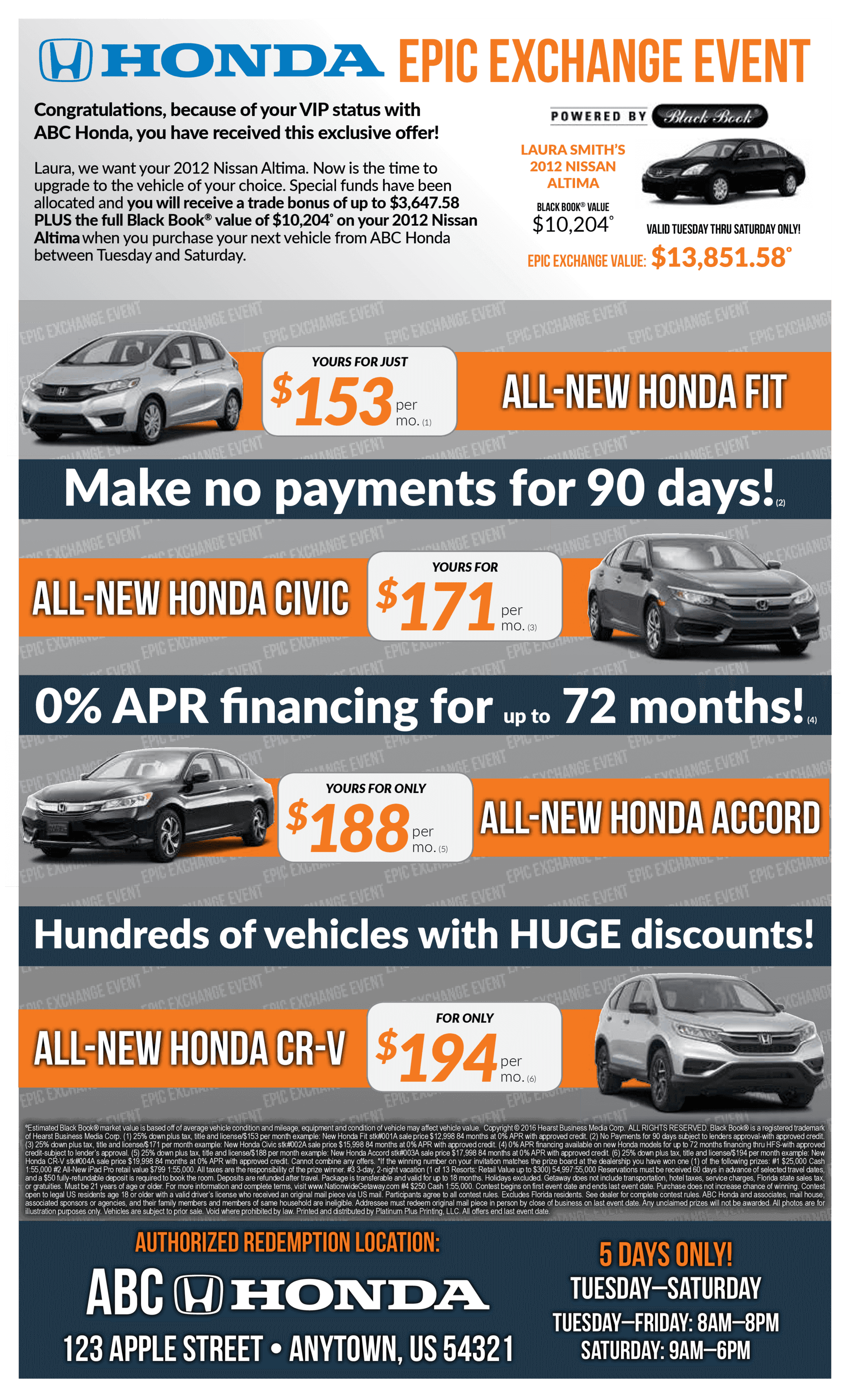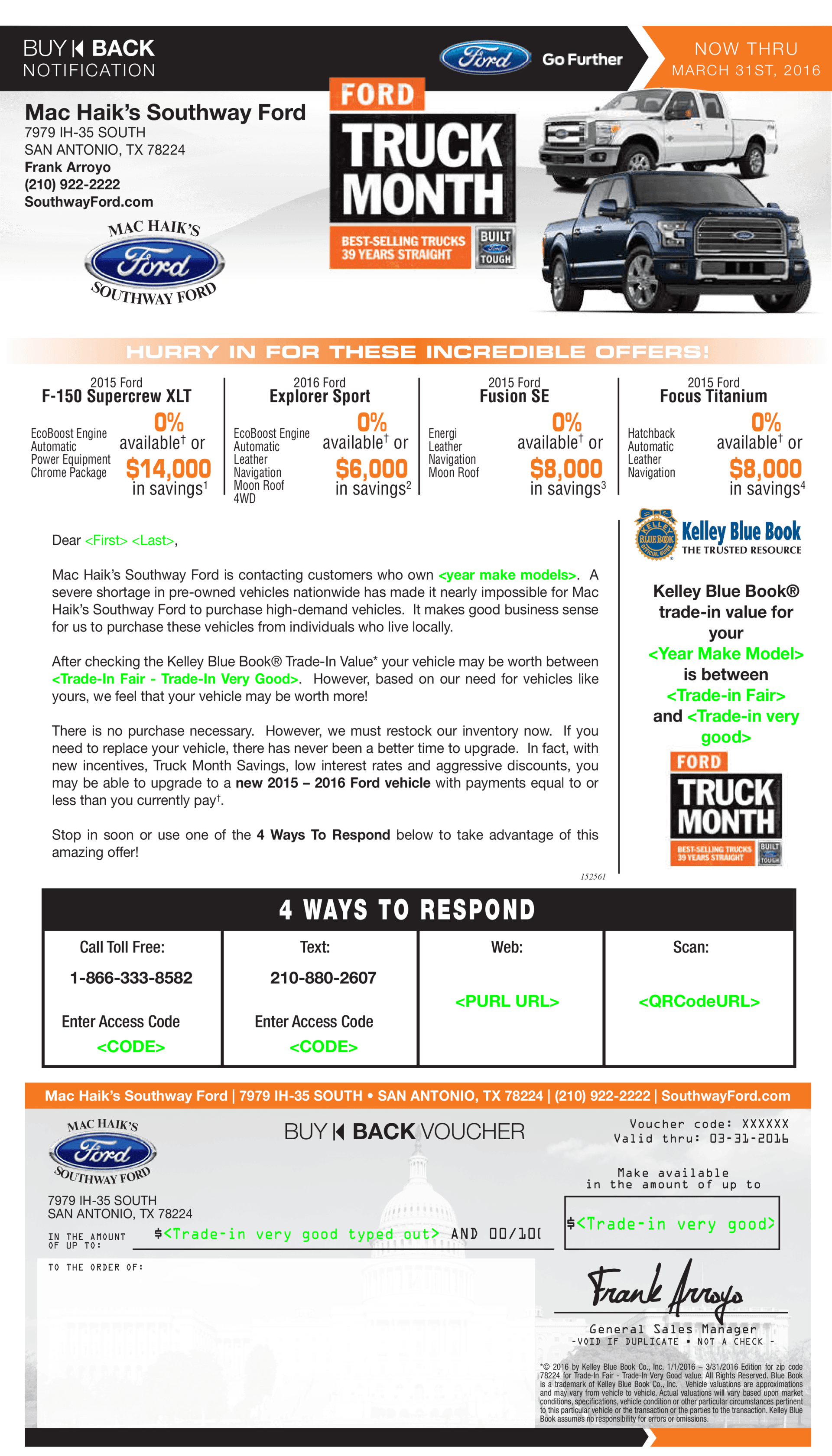 Each piece is personalized with the customer's name and vehicle pictures corresponding to the vehicle the customer drives. For more information about the gift card exchange that comes with most of the variable data mailers.