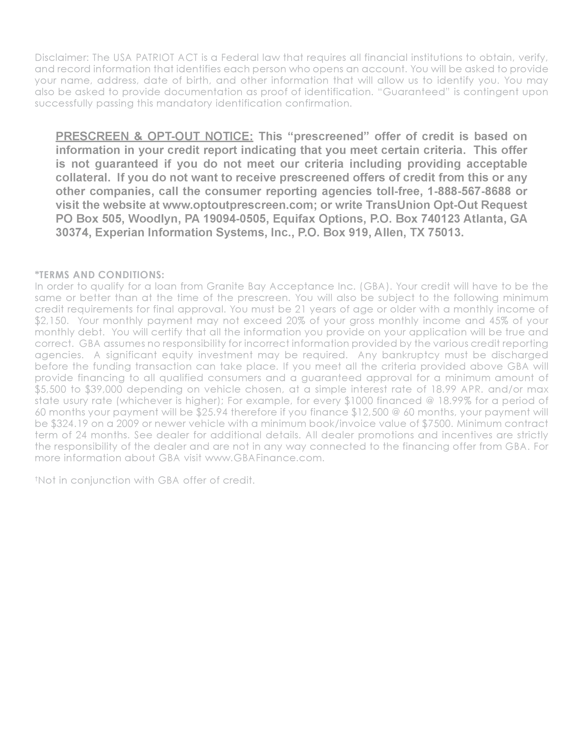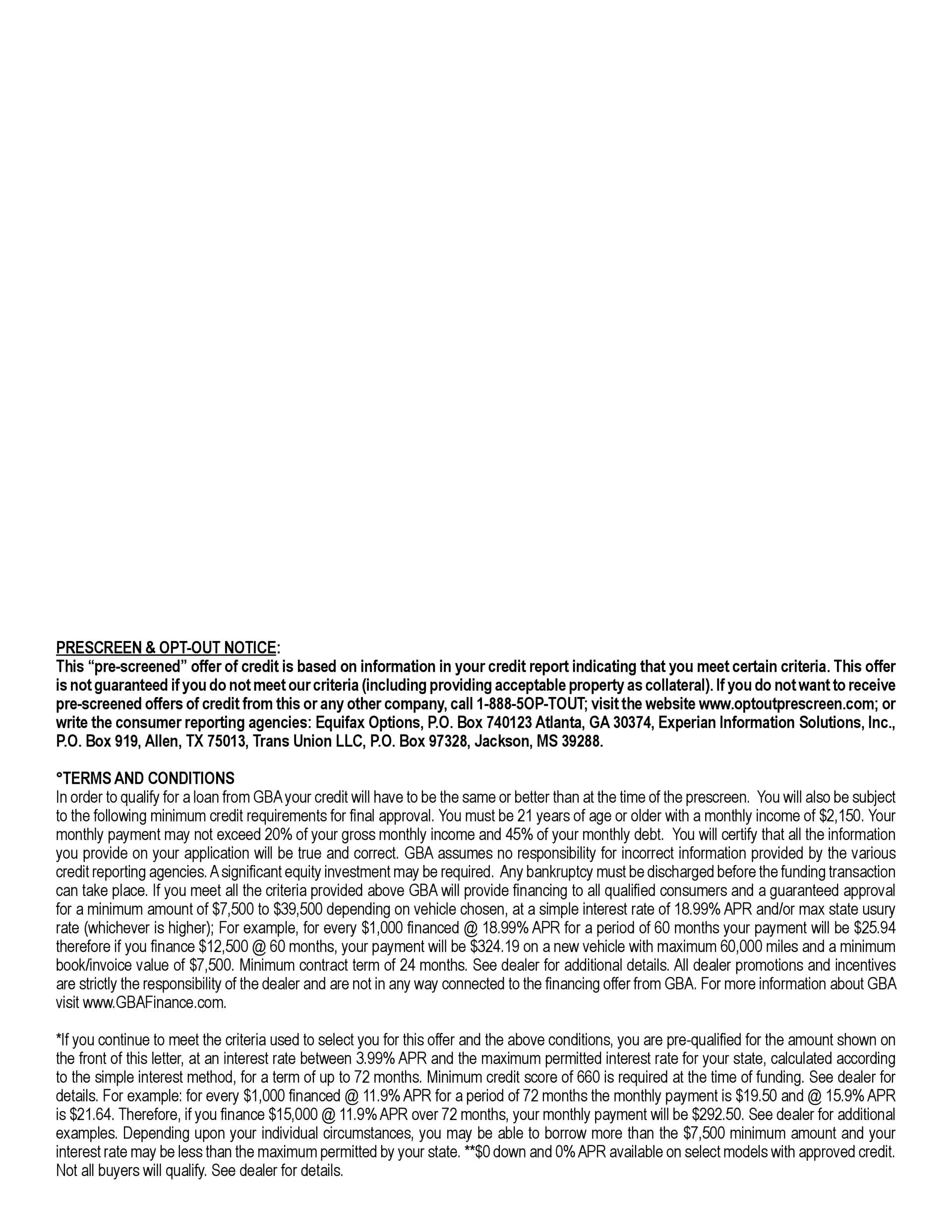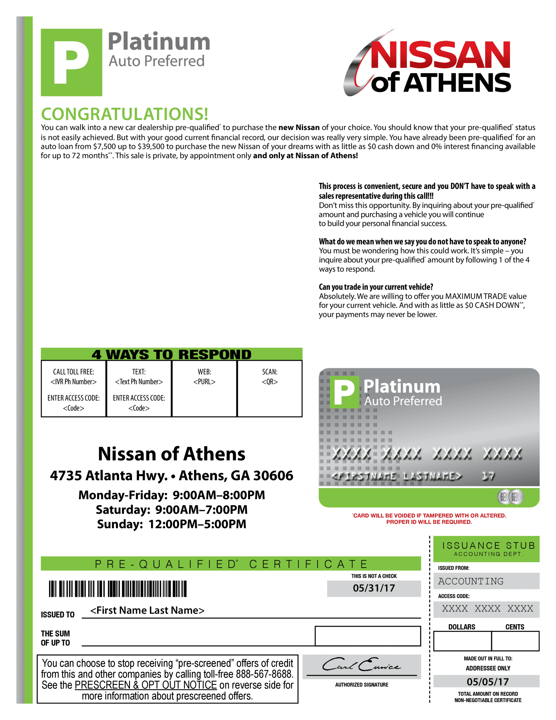 Dealerships issuers are looking for potential new customers who meet certain criteria such as income, credit worthiness, and even geographic location. The major consumer credit bureaus will sell these dealerships a mailing list, which the dealerships can use to send out offers for specific products labelled “pre-approved” or “pre-qualified.”
